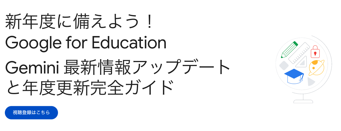Google for Educationは2月13日に、オンラインセミナー「新年度に備えよう!Google for Education Gemini 最新情報アップデートと年度更新完全ガイド」を開催する。参加無料。事前登録制。