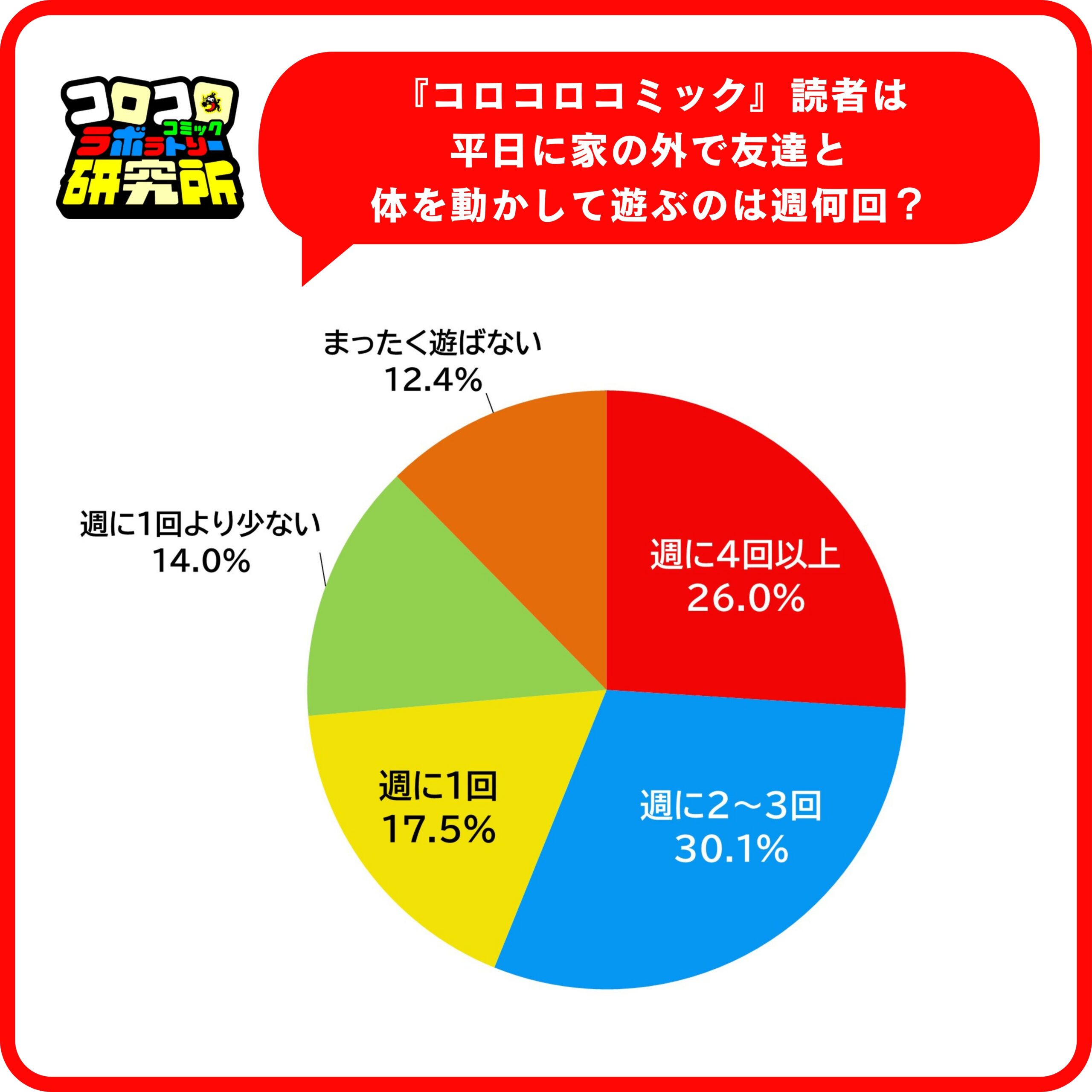 調査は、同社が発行する男子小学生向けマンガ雑誌『コロコロコミック』読者とその家族を対象に、運動・スポーツをすることは好きか、平日に外で遊ぶ頻度、外で遊べない理由について聞いている。