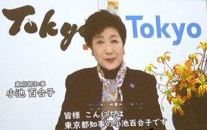 東京都知事の小池百合子氏はビデオメッセージで、「東京都知事賞を受賞した国立市立国立第二小学校の仲彩乃さんの作品は江戸時代の絵描きである、伊藤若冲の代表作『群鶏図』をベースに、さまざまな個性を持った人たちが一緒に生きていくという、社会を描いた力作です。江戸時代には着物を再利用して何度も使う文化や物を長く使い続ける習慣など、今の私たちの生活にもつながる工夫や知恵がありました。東京都は江戸から続く文化も大事にしながら、みんなが笑顔で住み続けられる持続可能な社会を目指しています。持続可能な社会は一人では作ることができません。多くの人たちの協力により、実現することができます。みんなで東京の未来を明るく照らしていきましょう」とお祝いの言葉を述べた。