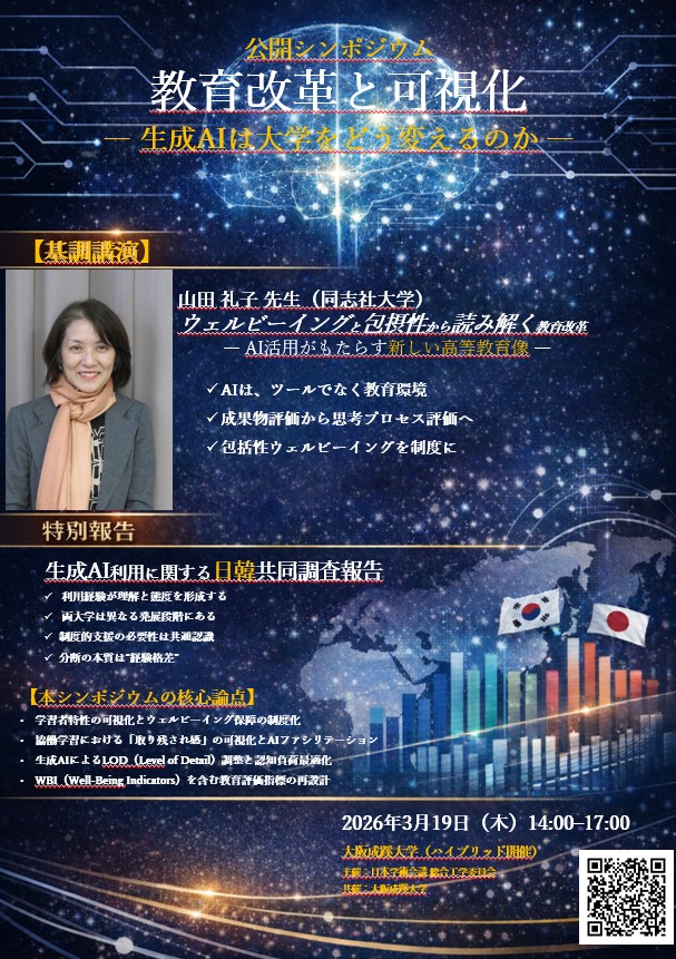 大阪成蹊大学で3月19日、公開シンポジウム「教育改革と可視化-生成AIは大学をどう変えるのか-」(主催:日本学術会議、共催:大阪成蹊大学)がハイブリッドで開催される。