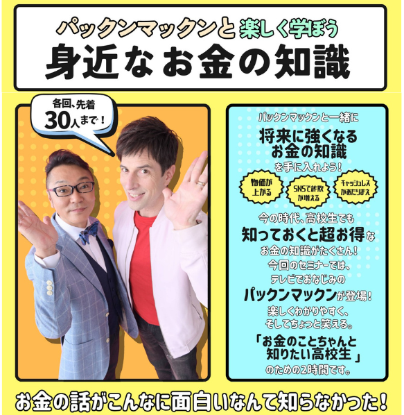 認定NPO法人キッズドアは4月4日に、東京・墨田区の千葉大学墨田サテライトキャンパスにて、高校生世代を対象とした春休み特別企画の無料イベント 「パックンマックンと楽しく学ぼう 身近なお金の知識」を開催する(協賛:MetLife Foundation)。参加費無料で、交通費も往復1,500円まで支給する。定員各回先着30人。