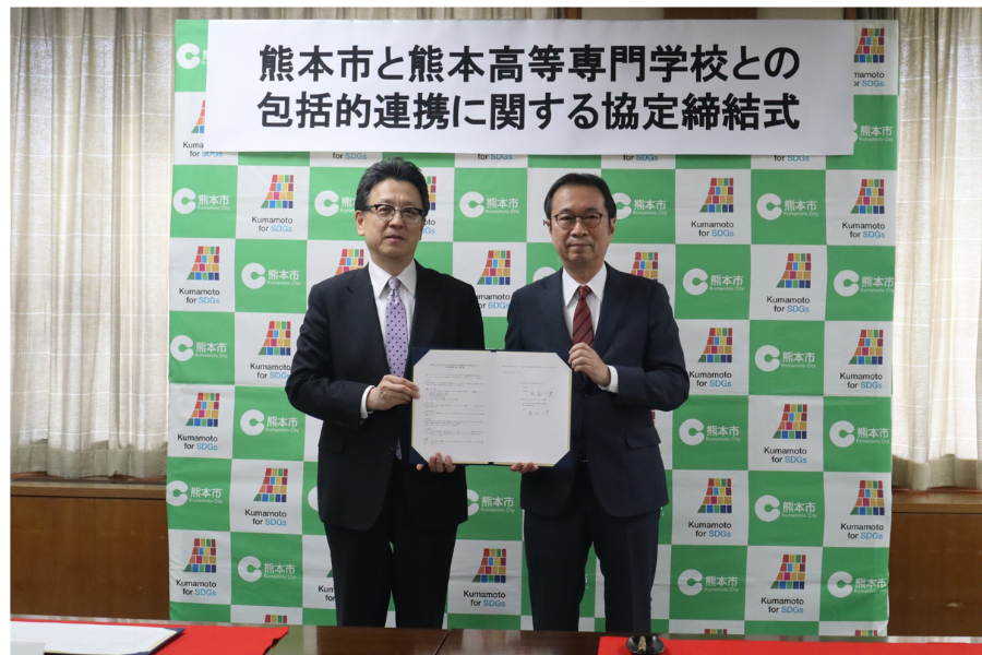 熊本市と熊本高等専門学校は3月9日、包括連携に関する協定を締結。本協定は、相互の知的資源及び人的資源を活用し、地域社会の発展ならびに教育研究の向上に寄与することを目的としたもので、今後、教育研究の振興や人材育成などで連携し、地域に根ざした取組のさらなる推進を図る。