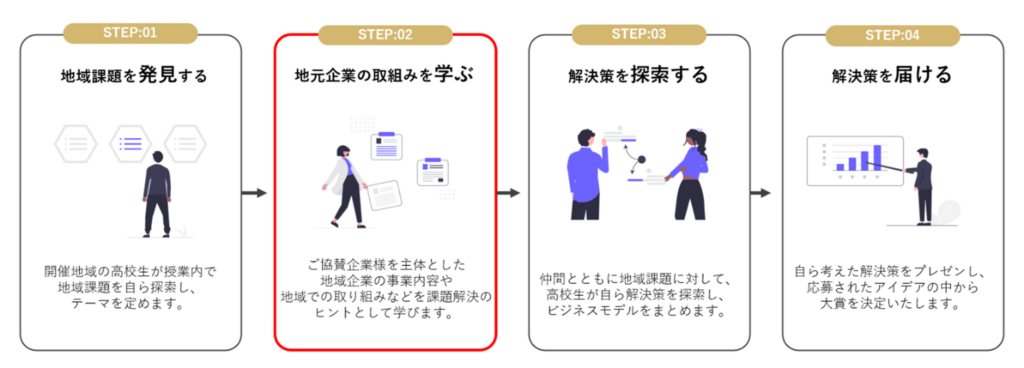 本大会では、同社の探究学習プログラム「Locus」を利用しながら、地域企業の課題や地域での取り組みなど、課題解決のヒントを学ぶ期間を経てから解決策を探索します。※「Locus」の利用は必須ではない。