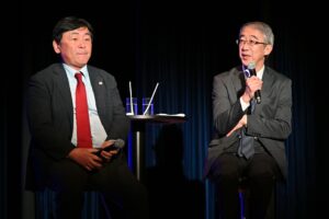 <第二部>経営者×Z世代ラウンドテーブル「2040年を見据えた優先課題と共創の条件」では、夜明け会議の参加学生メンバーと企業の意思決定層の計7人が登壇。企業視点と次世代視点を交差させながら、シナリオ・プランニングを通じて洞察した2040年の日本社会に向けて、現在の日本が直面する構造的課題と、その先に求められる変革の方向性について議論を展開した。