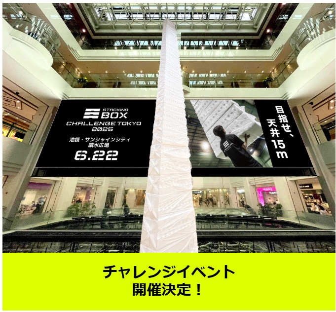 %が空気の発泡スチロールの箱を積み上げる、スポーツエンターテインメントゲーム「STACKNG BOX」を体験できるイベント「STACKNG BOXチャレンジTOKYO」が6月22日、東京・豊島区のサンシャインシティ 噴水広場で開催される。