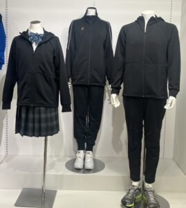 教員向けに提案していたスポーツパーカーは、生徒向けにモアヒートを取り入れた。体操服としても学校外の移動着としても着用しやすい。
