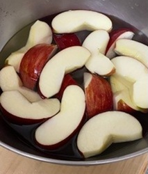 新たな品種が次々に開発されるりんごですが、手軽にできるデザートを作ってみました。今回は紅玉が手に入ったので色鮮やかな紅い皮を生かした「コンポ-ト」です。