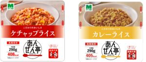 1袋の内容量は290㌘(茶碗約2杯分)、約400㌔㌍以上の高カロリーを摂取でき、満足感が得られる。メニューは、ケチャップライス、五目御飯、カレーライス、中華風炊き込みごはん、きのこごはん、やさしい白ごはん、鶏しょうがごはんの7種類から選べる。