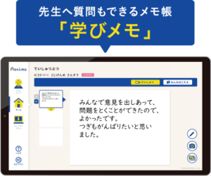 子供の「学びたい」気持ちをサポートできるように、質問に個別で答えることができる「学びメモ」、デジタル上のノートにPC上で手書き文字や写真を付与して提出し、皆で共有することもできる「学びのポストカード」なども追加した。