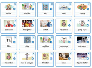 絵辞典は、新規に単語を追加できる「My単語」機能を用意。単語のフラッシュカード機能では、1語ずつ再生したりランダムに複数再生したりできる。その他、家庭学習にも使える「自習コーナー」を用意。「かるたゲーム」「マッチングゲーム」などもできる。ふり返りシートもデジタルで提供する。
