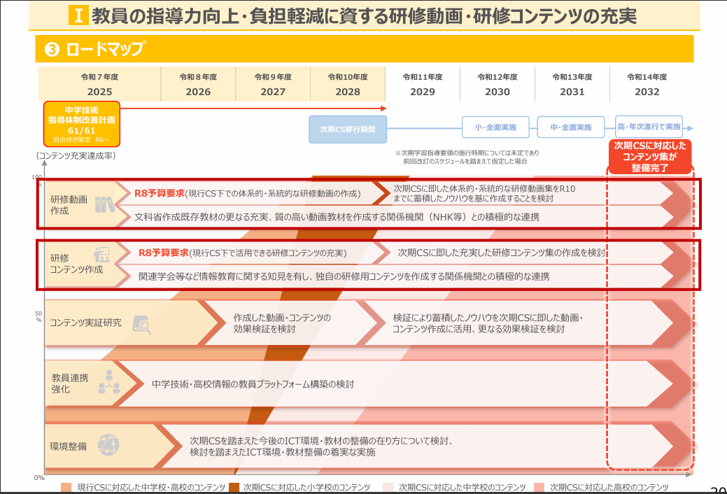 教員の指導力向上・負担軽減に資する研修動画・コンテンツも次の学習指導要領が始まる前に先行して制作予定。また、情報活用能力の向上に向けた学習用教材の開発と実践事例の創出も予定しており、いずれも2026年度予算で要求済だ。