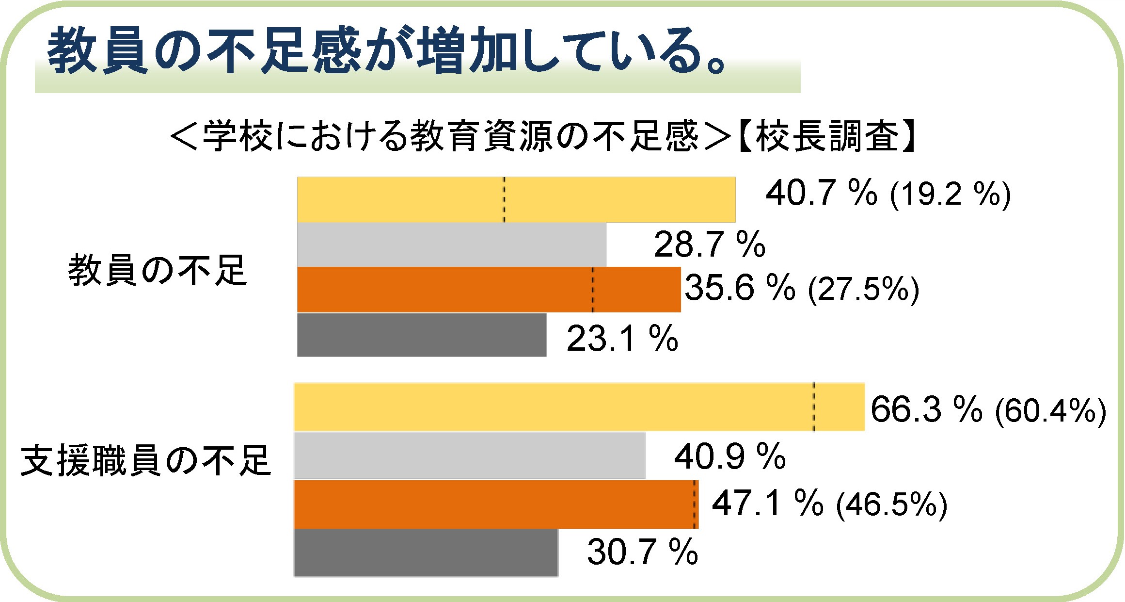 また、小学校校長66.3%、中学校校長47.1%が「支援職員が不足」と回答。特に小学校でのニーズが高い。