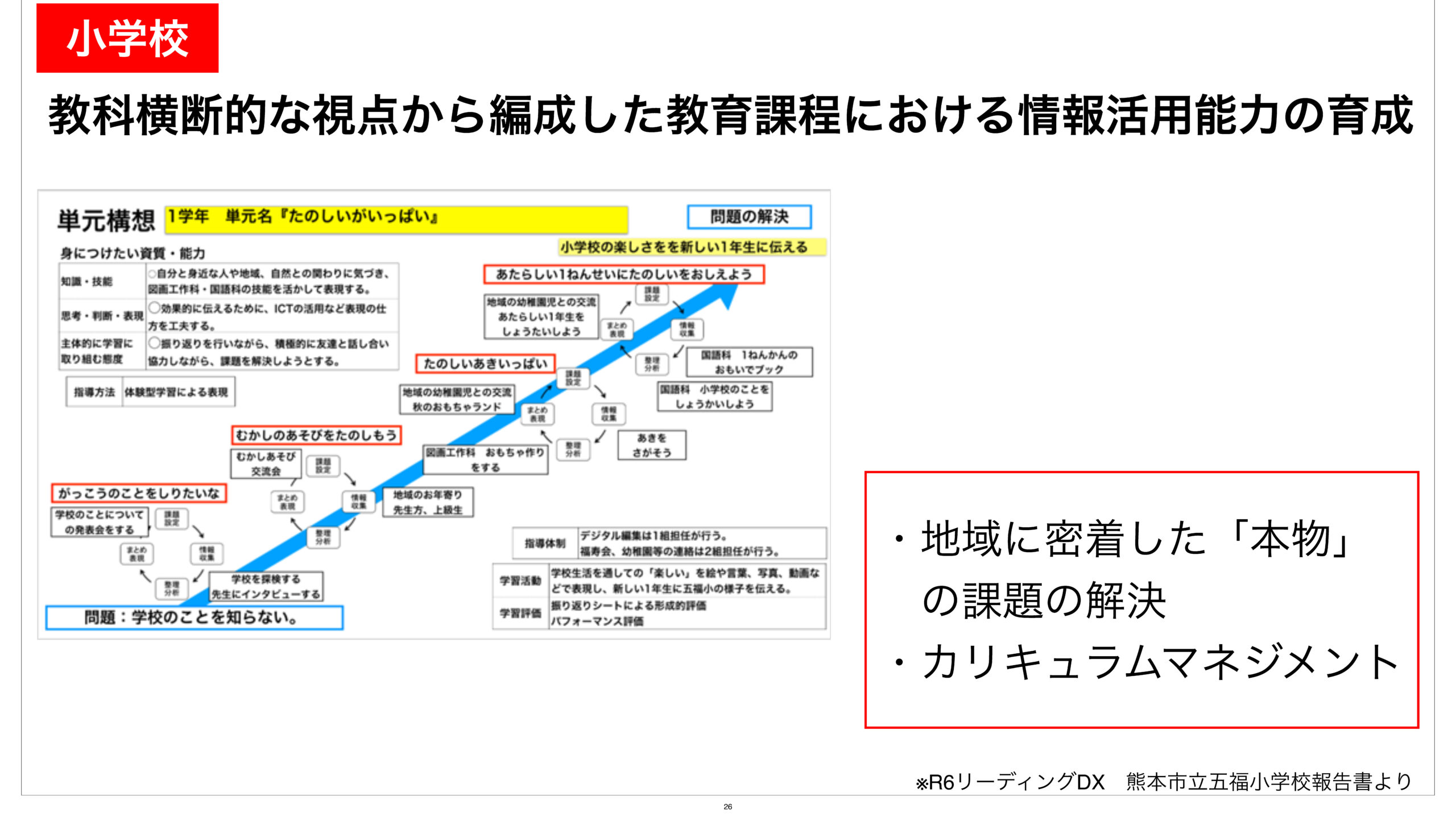 熊本市が目指すのは「豊かな人生とより良い社会を創造するために、自ら考え、主体的に行動できる人を育む」こと。その実現に向けて伴走型支援を続けている。ICTは子供の学びを豊かにする手段であり、その可能性を引き出すのは教員の挑戦だ。不安を抱える教員にも寄り添いながら、現場と共に子供たちの学びを広げていく。