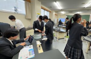 特に、理科の学習では、分野を貫く課題を設定して、主体的・対話的な学びを進めている。分野を貫く課題は、複数の単元において共通項を整理し、学習意欲を持続化させ、深い学びにつなげるねらいがある。例えば、3年理科「宇宙の天体」(実践者:中川絢太教諭)では、「プラネタリウムの解説者になろう」といった分野を貫く課題を設定して、生徒が課題を自分ごとにして学びを進めている。そのミッションを達成するためには、惑星や衛星等のことがきちんと説明できるようになる必要があり、各自が理解するだけでなく、他者と協力して説明できるように学び合う。1年理科「音の性質」(実践者:東拓郎教諭)では、「宇宙から見て、光や音はどう伝わるか」といった課題を解決するために、さまざまな実験を自ら計画して実施し、協働的な学びの中で複数の実験結果を統合的に考察していく。