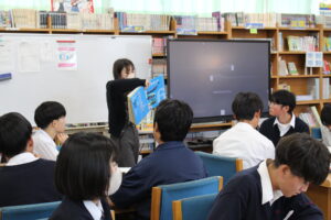 学校図書館では総探をはじめ、国語科や各教科の授業が行われている。