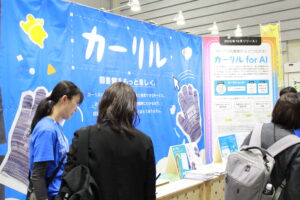 初日の主催者セミナーが「AIと図書館」をテーマとしたほか、出展企業の各ブースでは、カーリルが新サービス「カーリル for AI」の紹介など、AIをテーマとする内容が目立った。
