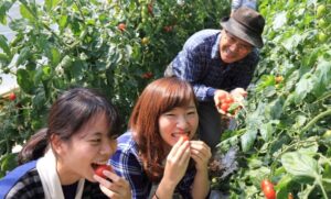 農作業体験で収穫したてのトマトを味わう