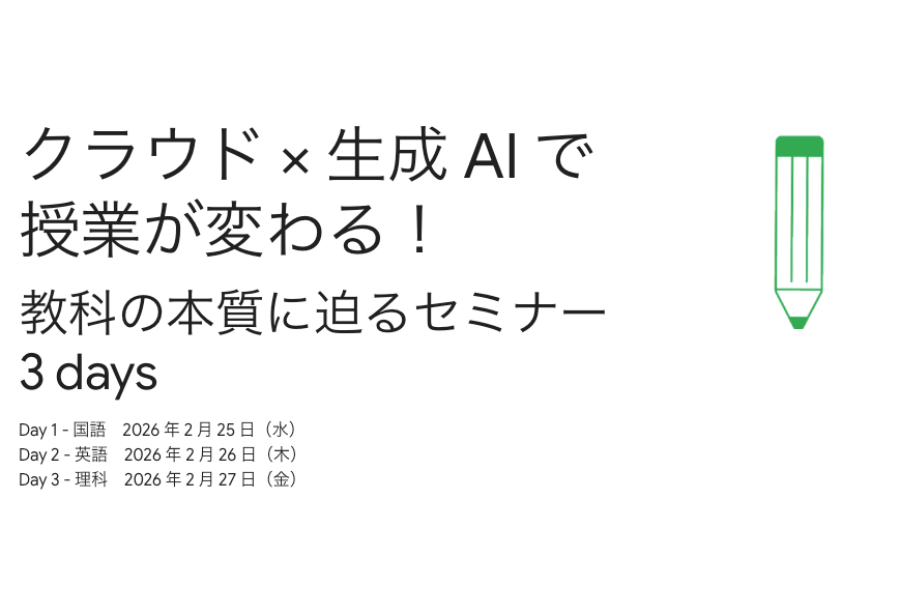 Google for Education 「クラウド×生成AIで授業が変わる!教科の本質に迫るセミナー3days」を2/25-27にオンラインで開催